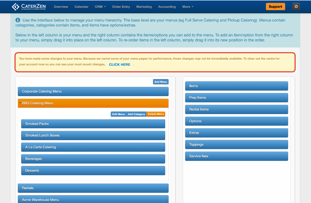 When making menu changes, we recommend working in a single CaterZen tab.