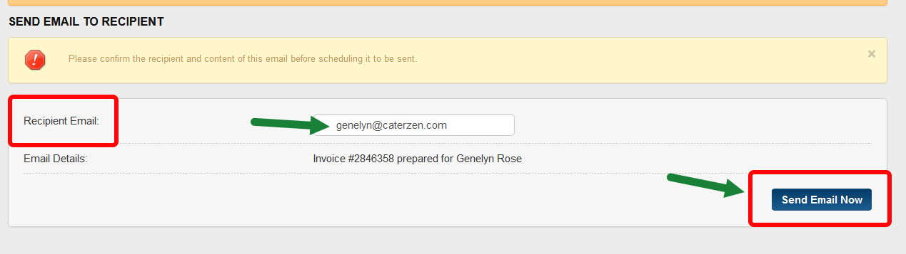 • The customer's email will pre-populate automatically, but you can update it if needed. Confirm or update their email address, then click Send Email Now.