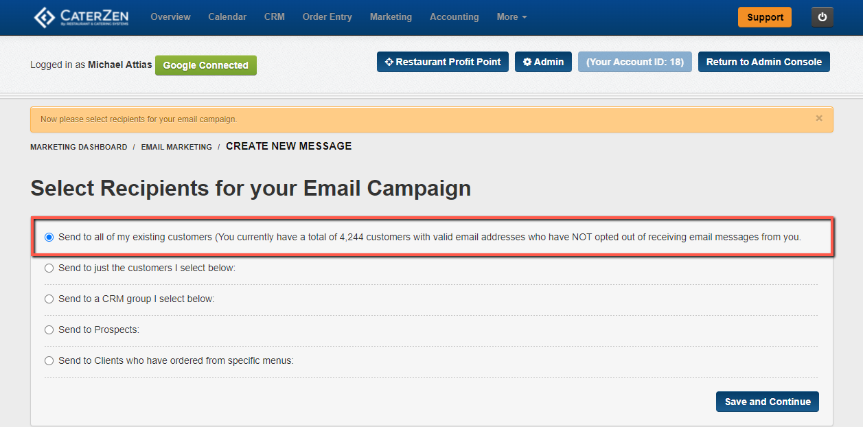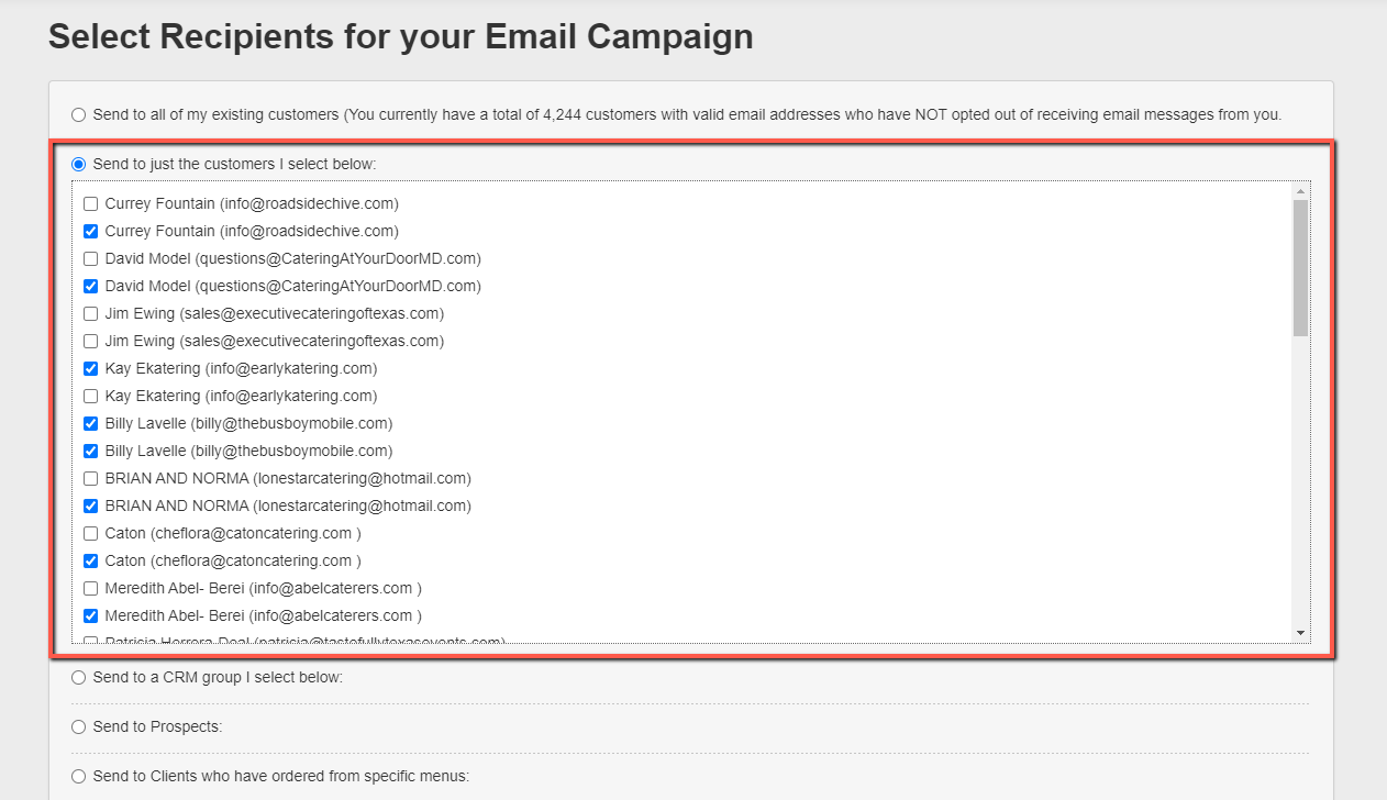 16. Select Recipients for your Email Campaign. You have 5 options.