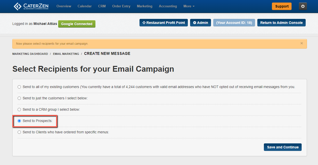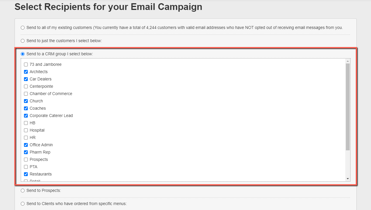 d.) You can send to all people in your CRM that are checked as "Prospects".