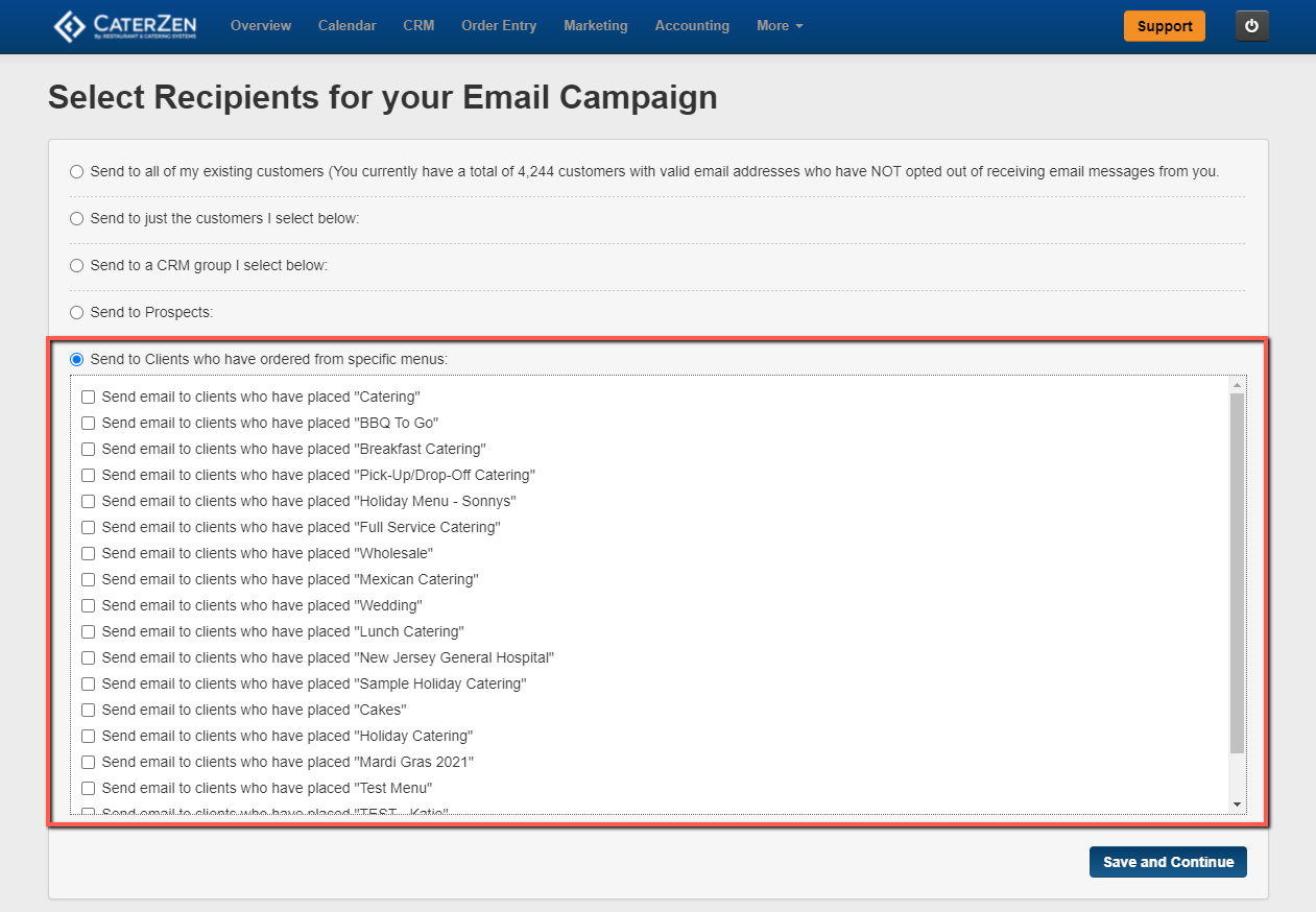 e.) You can select customers that have ever ordered off of a specific Menu.