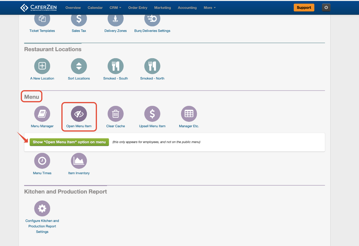 Before your team can use Open Menu Items during Order Entry, the feature must be enabled in Admin.