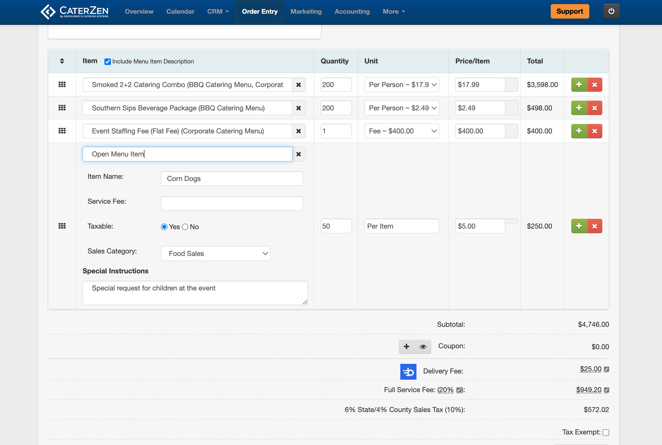 Once Open Menu Items are enabled, your team can add one during Order Entry.