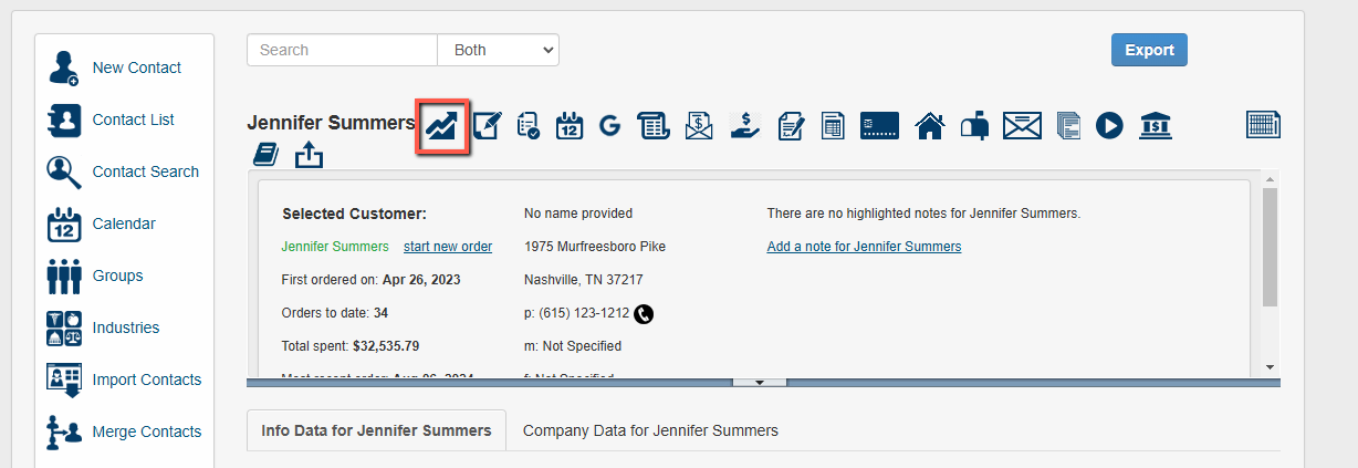 By default, the Stats icon appears when you first search for the customer’s record, giving you instant access to their order history and key details.