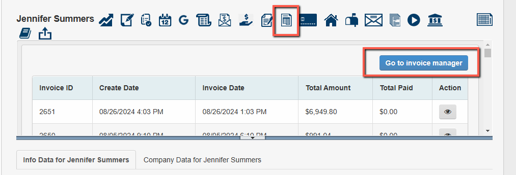 The Invoice icon provides a complete history of all invoices created for the customer's past orders.