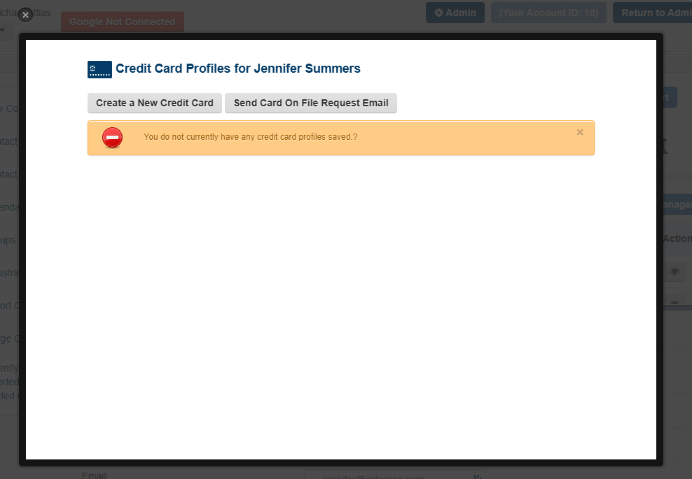 The Credit Card icon allows you to manage stored payment methods for the customer securely.