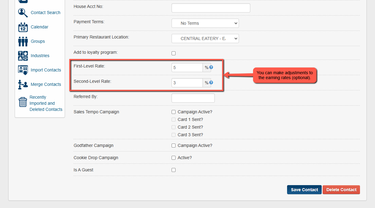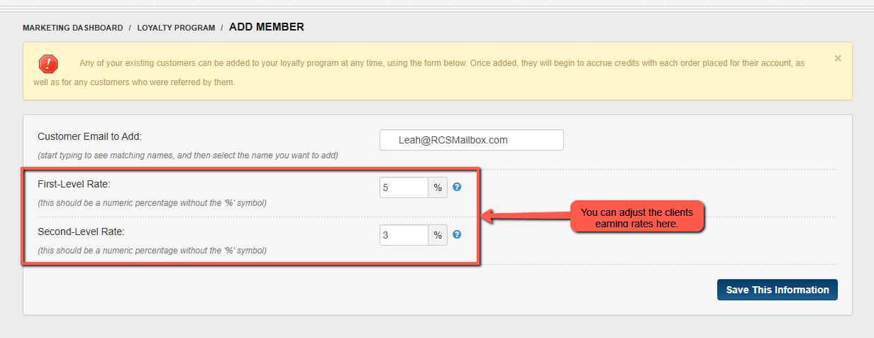 4. Here, you can also adjust or change the earning rates for this particular client. Otherwise, your default settings will appear.
