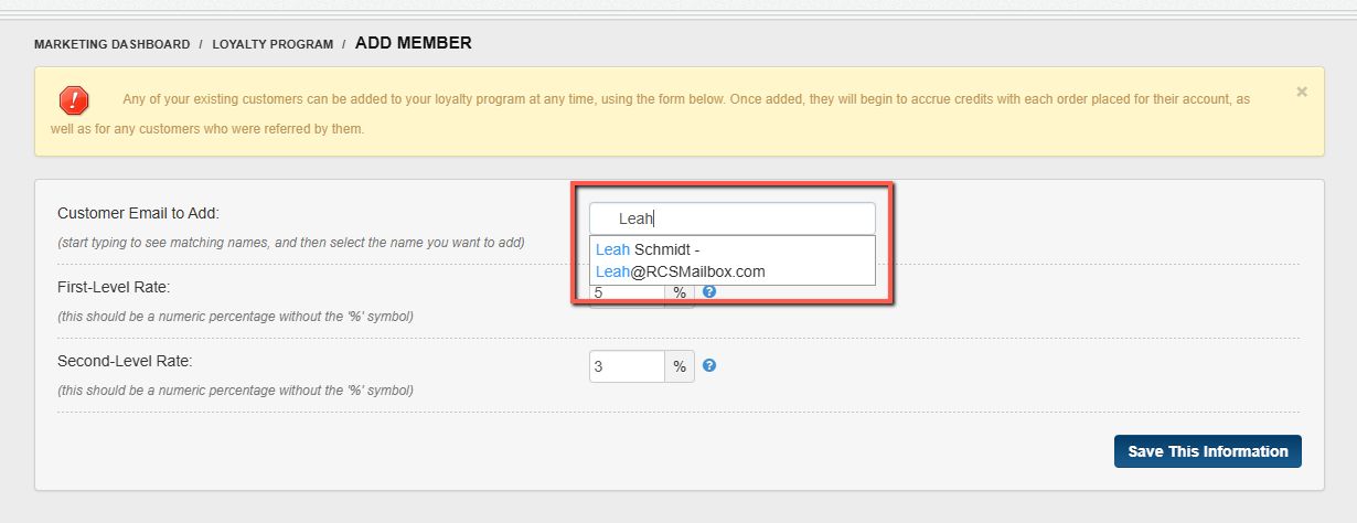 The other way you can add someone to the Loyalty Program is in the Loyalty Program Dashboard.