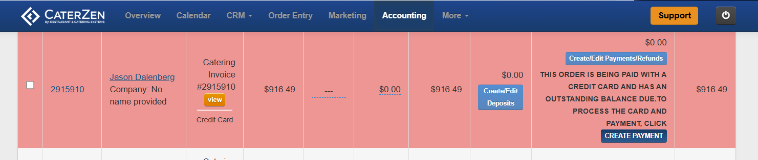 If your account is set up to receive credit card processing reports, CaterZen can email a summary of approved and failed transactions after the daily processing run.