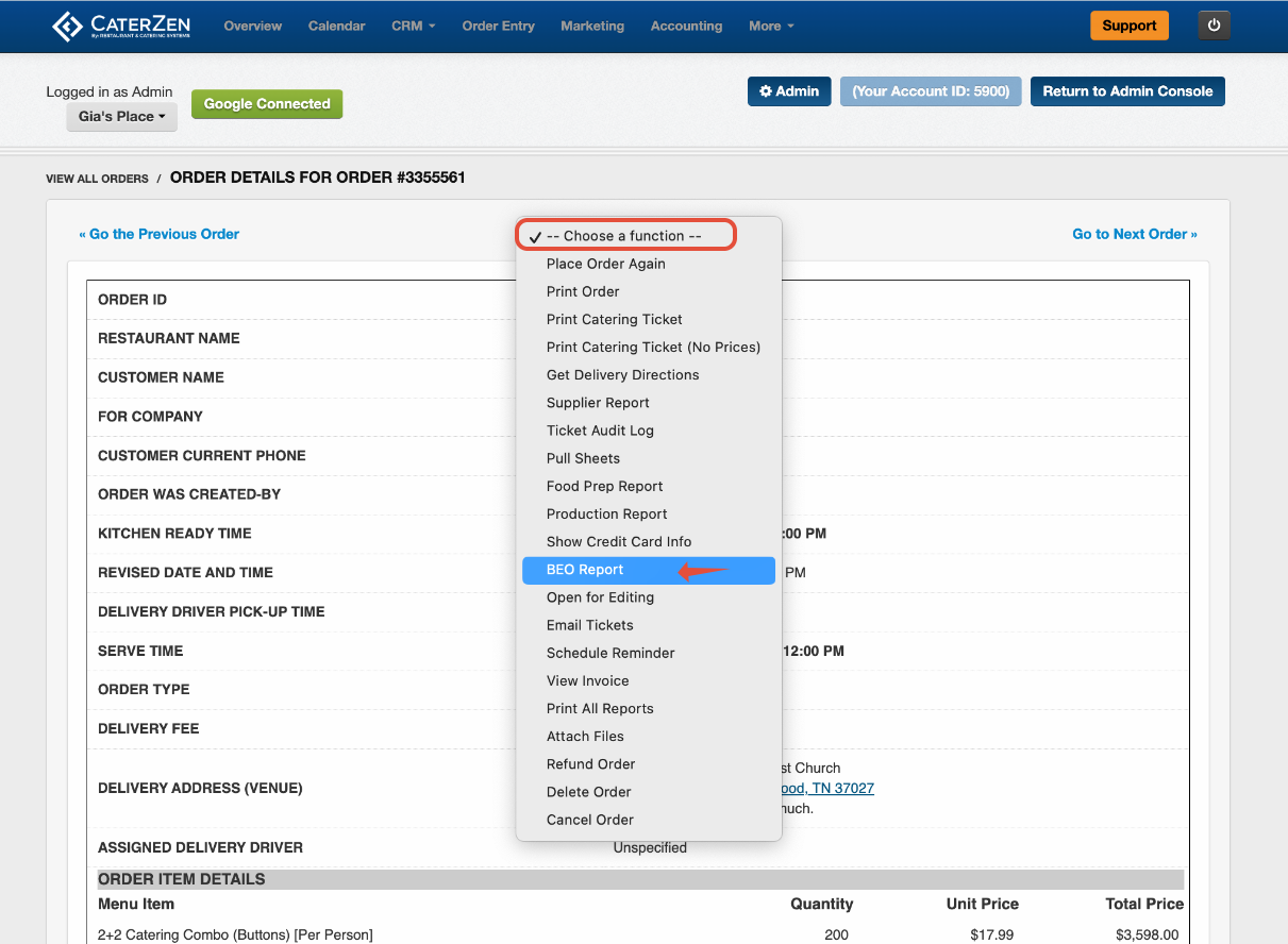 Send the BEO directly from CaterZen