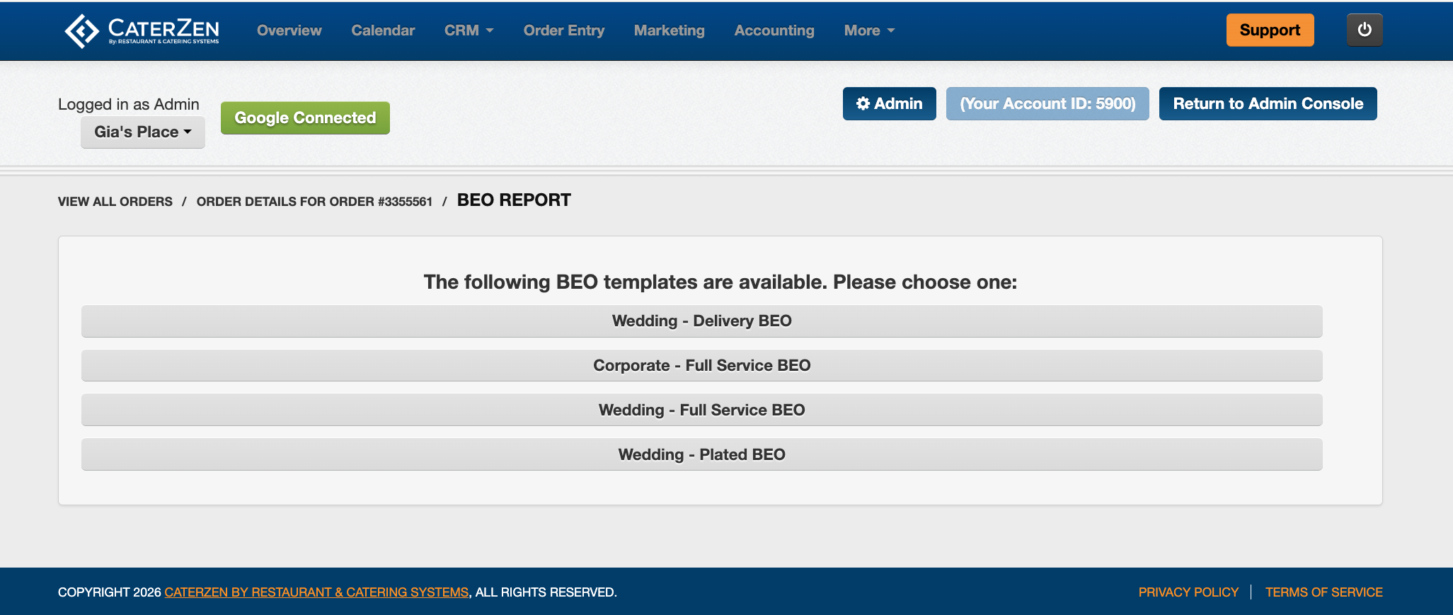 Choose the BEO template you want to apply to this order