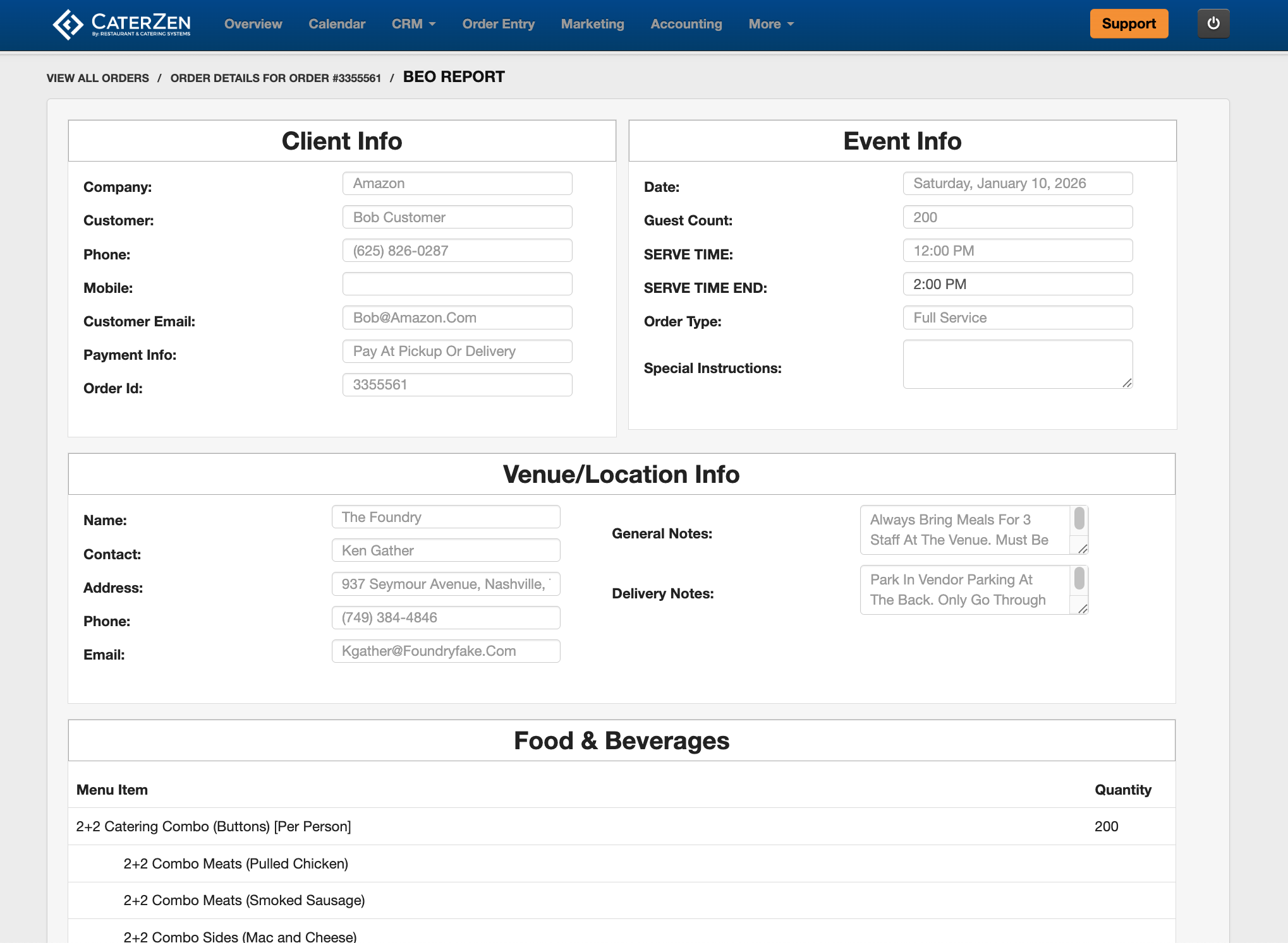 If any of this information is missing, it usually means it was not entered on the order or set up elsewhere in CaterZen.