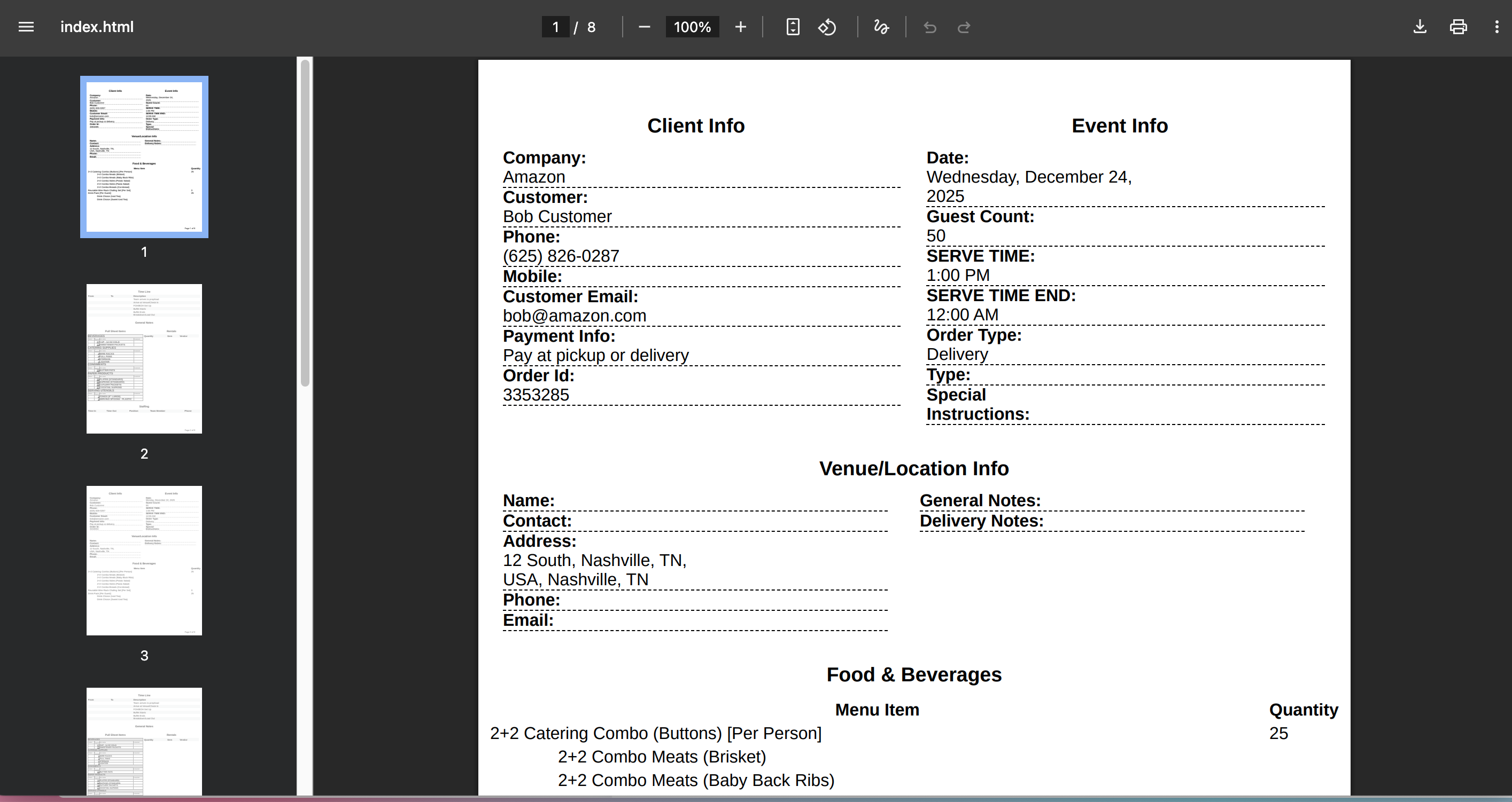 The BEO will download as a PDF