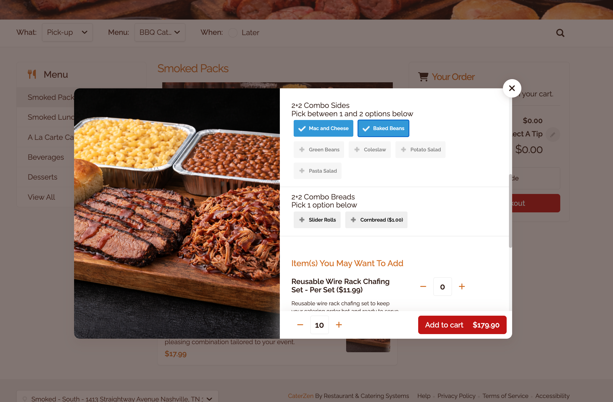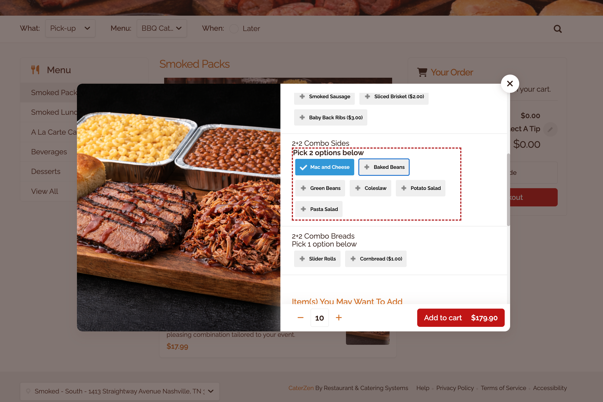 Most Common Setup: Packages (Choose 2 Meats + Choose 2 Sides)