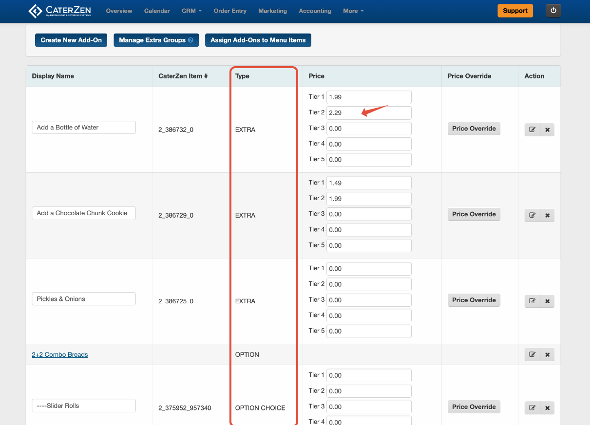 Creating/Updating Pricing Tiers on Menu Items Add Ons