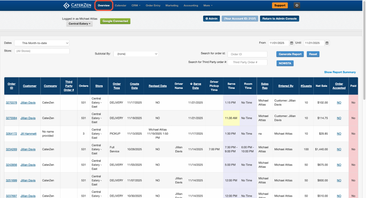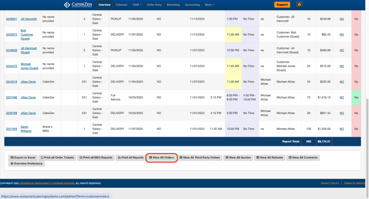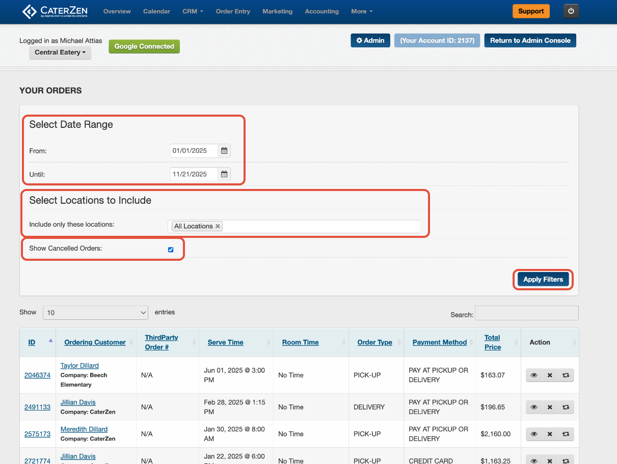 If you need to review orders that were canceled, you can pull them directly from the “View All Orders” page. This view lets you filter by date range and location, then include canceled orders with a single checkbox.